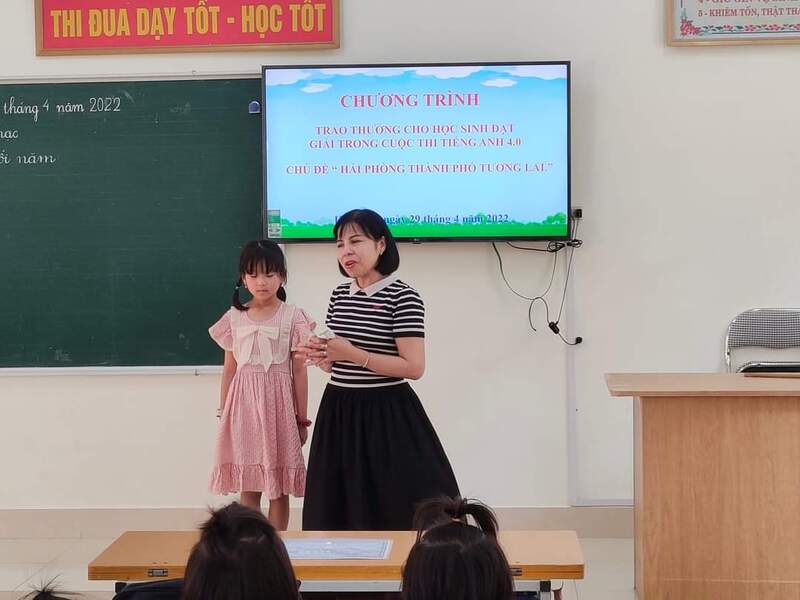 Ngày 29/4/2022, đại diện Ban tổ chức cuộc thi Tiếng Anh 4.0, với chủ đề "Hải Phòng thành phố tương lai" đã về trao tặng các phần quà giá trị cho em Bùi Huyền Ngọc Anh, lớp 1A2 đã vượt qua các vòng loại và đạt giải khuyến khích trong cuộc thi. Về dự có đại diện Thành đoàn Hải Phòng, Công ty TNHH Đầu tư xuất nhập khẩu Sơn Trường, Công ty TNHH Giáo dục Quốc tế Đức Bảo và đại diện BGH nhà trường, phụ huynh học sinh và các em học sinh. Phần thưởng của em gồm Giấy chứng nhận của Thành đoàn Hải Phòng, hợp đồng bảo hiểm trị giá 8.000.000đ do Công ty TNHH đầu tư xuất nhập khẩu Sơn Trường trao tặng, bản quyền ứng dụng EASY CLASS một năm trị giá 745.000 và khoá học phát âm với người nước ngoài trị giá 2.000.000 do Công ty TNHH Giáo dục Quốc tế Đức Bảo trao tặng.