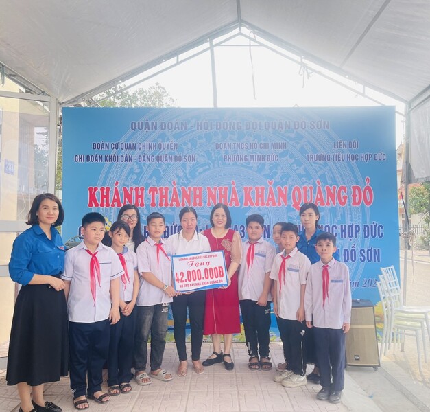 Thực hiện Kế hoạch của HĐĐ quận Đồ Sơn, HĐĐ phường Minh Đức và Kế hoạch năm học 2023-2024 của Trường Tiểu học Hợp Đức, trong hai ngày 26 và 27/3/2024, đại diện lãnh đạo nhà trường, chi đoàn giáo viên và Liên đội Tiểu học Hợp Đức đã dự Khánh thành nhà Khăn quàng đỏ và trao tặng số tiền ủng hộ để xây nhà cho gia đình em Bùi Đức Hạ học sinh lớp 5A3, Trường Tiểu học Hợp Đức, thuộc gia đình hộ Cận nghèo, sống tại TDP Ngô Quyền, phường Minh Đức với tổng số tiền là 46.700.000 đồng. Đây là số tiền được ủng hộ từ các bậc phụ huynh, các em học sinh và tập thể cán bộ, giáo viên nhà trường.